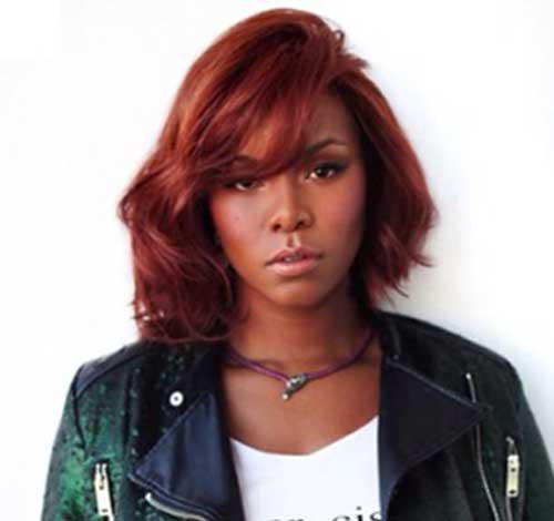 Here is a medium length bob hair with gorgeous burgundy hair color.