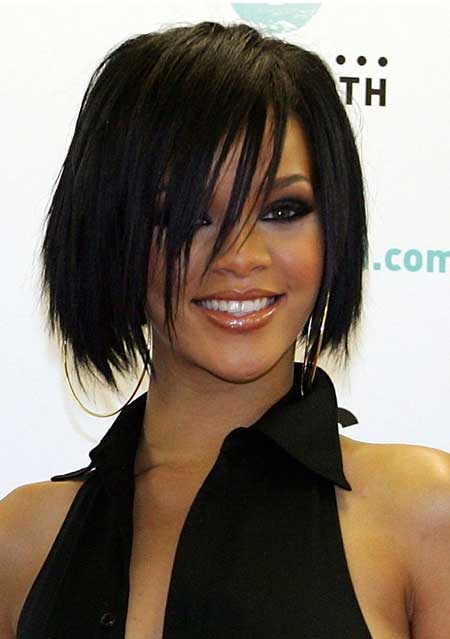 21. Rihanna’s Dark Straight Layered Bob