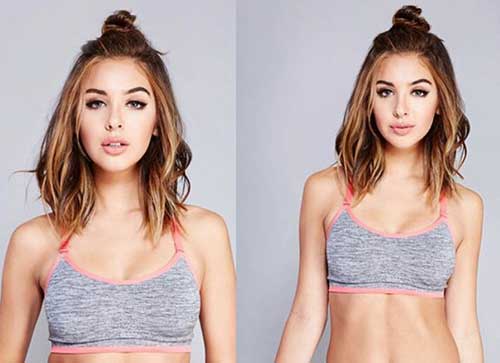 Her ombre bob hair pinned back so it is a great hairstyle for summer.