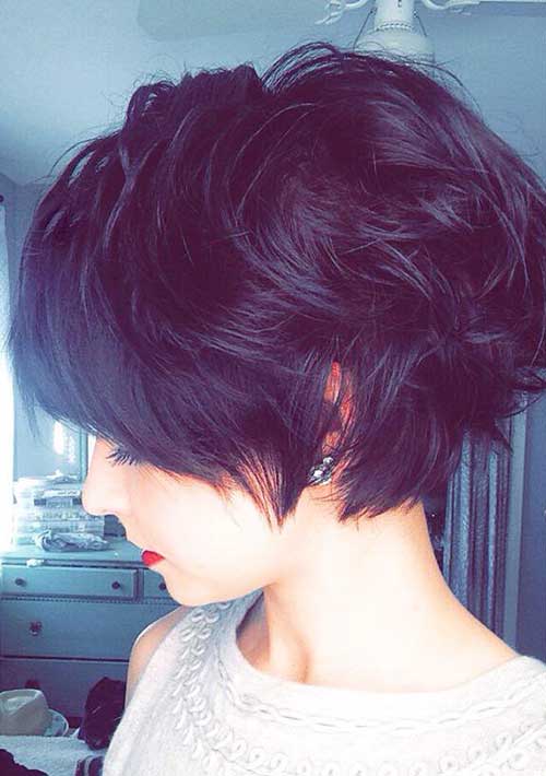 Got thick hair? Here is a dark short haircut with choppy layering.