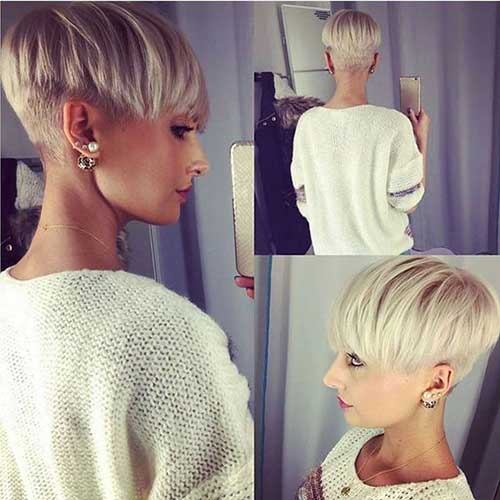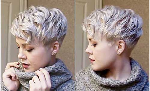Here is a cute platinum pixie hairstyle idea that will look great on wavy and thick hair types, as you can see the back is shorter and it adds a modern look.