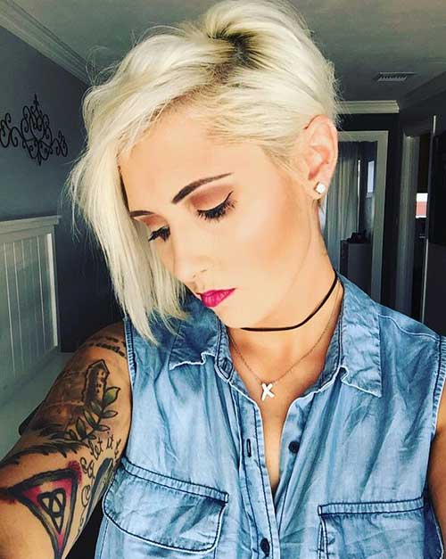 If you are looking for bold and eye-catching look, this long ashy blonde pixie with an undercut style may be a good example for you.